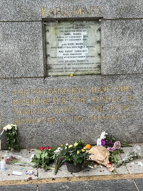 At that time I wasn’t surprised that the location – opposite Karl Marx – was chosen, with Marx’s words displayed, as ‘The philosopher only interpreted the world in various ways.The point however is to change it.’ Ironically, when I recently went I noted that although Raphael was situated not far from the Marx’s memorial he apparently almost turned away – not personally engaging with the remarks…