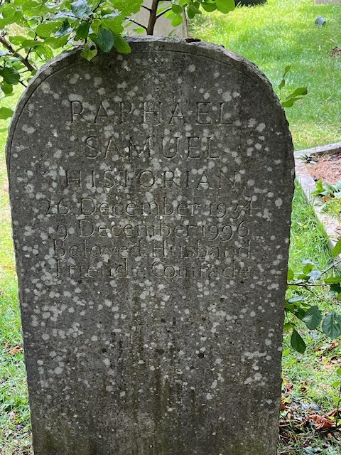 Over many decades I have visited Highgate cemetery existing since 1839, near Hampstead Heath, & particularly the east section which tends to contain graves of many radical people. Yet the only time I had attended the cemetery as part of a large funeral procession was when Raphael Samuel was buried here after his death in December 1996. Here was a a small band of almost Scottish players leading us towards a new grave in the eastern section near Karl Marx. Here was a friend and colleague often seen as a social historian, a socialist, a former CP member, a Ruskin College tutor and, more recently, the husband of Alison Light. The grave words would reflect these aspects as ‘historian, beloved, husband, friend, comrade.’